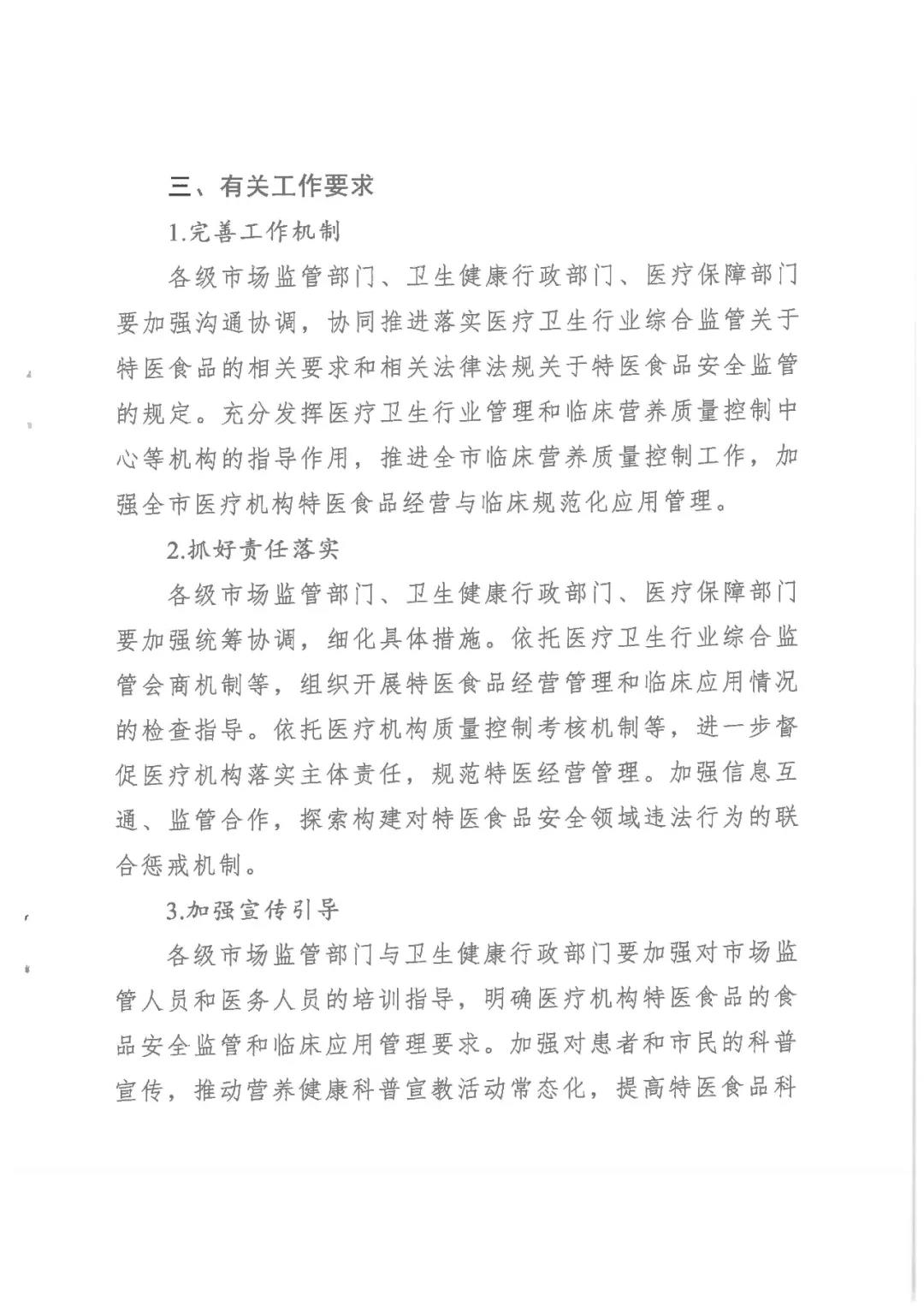 明確規(guī)范醫(yī)療機構(gòu)特醫(yī)食品經(jīng)營使用管理的工作措施,落實醫(yī)療機構(gòu)食品安全主體責任,加強行業(yè)管理與質(zhì)量管控。