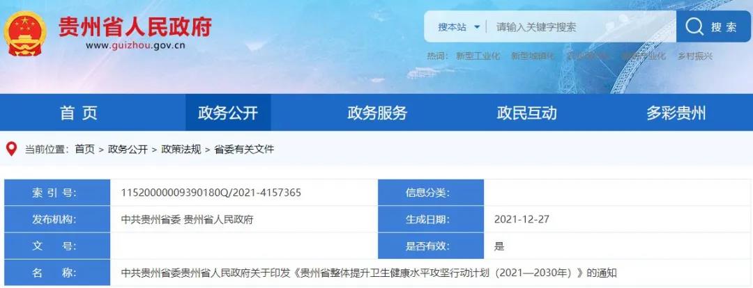 《貴州省整體提升衛(wèi)生健康水平攻堅(jiān)行動計(jì)劃 (2021—2030年)》印發(fā)