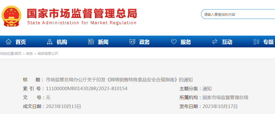 市場監(jiān)管總局制定發(fā)布《網(wǎng)絡(luò)銷售特殊食品安全合規(guī)指南》