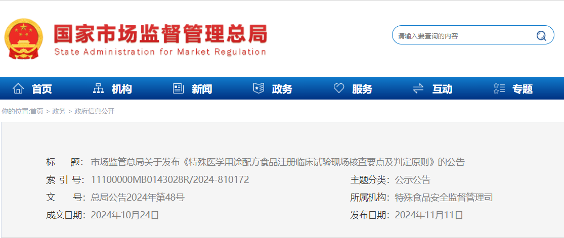 市場(chǎng)監(jiān)管總局關(guān)于發(fā)布《特殊醫(yī)學(xué)用途配方食品注冊(cè)臨床試驗(yàn)現(xiàn)場(chǎng)核查要點(diǎn)及判定原則》的公告